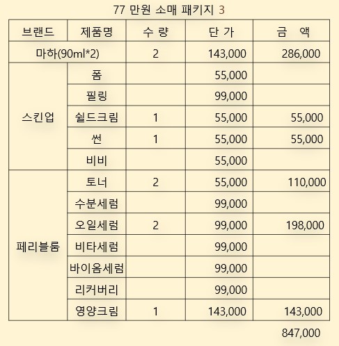 77 소매 패키지 구입시 스킨업 폼, 필링 각1개(154,000원 상당) 추가 증정 프로모션