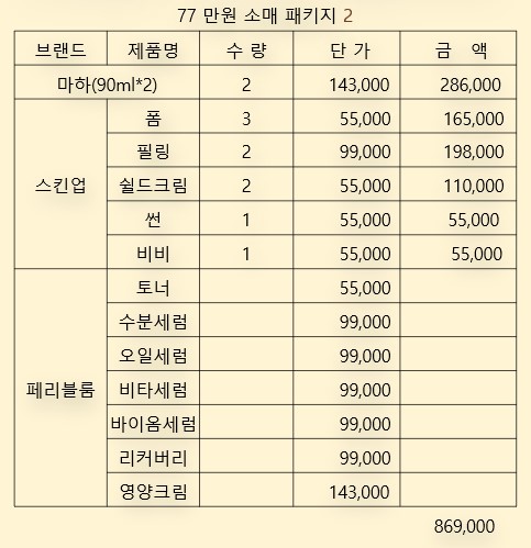 77 소매 패키지 구입시 스킨업 폼, 필링 각1개(154,000원 상당) 추가 증정 프로모션