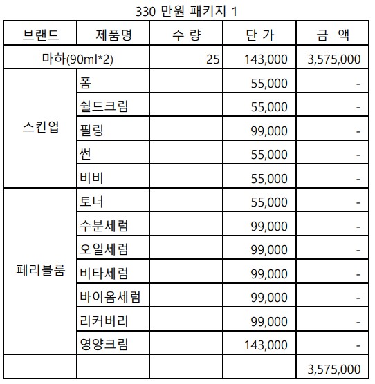 330 패키지 구입시 스킨업 5종 1세트(319,000원 상당) 추가 증정 프로모션